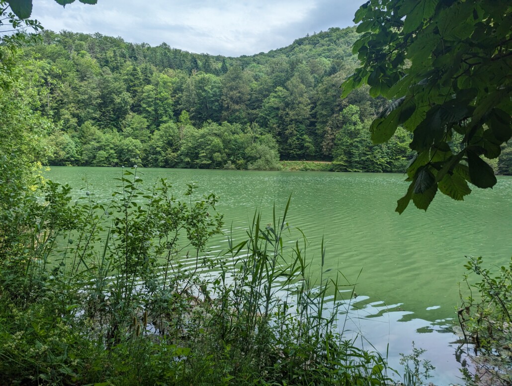 6 KM ist der erste Anstieg lang, auf Teer im kleinsten Gang mit kreuzen..dann kommt noch eine Feldweg Rampe und auf Singletrail geht’s runter zum Lac de Lucelle…Doppelte Ration Mittagessen..am Nachmittag gibt’s noch eine Rampensau..dann nach Komoot hoffentlich die letzte für die Bergetappe Tour de France nach Lindau…