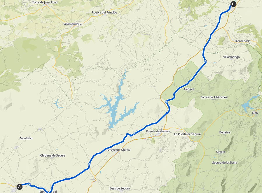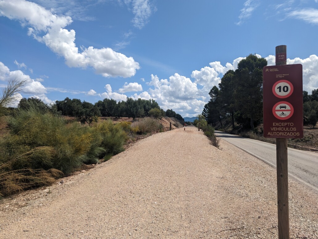 Von “meiner Finca” geht es erstmal weiter auf und ab, nach 15 km treffe ich einen deutschen und holländischen Biker die mir sagen es gibt wieder eine Via Verde de Segura und die geht durch bis Albacete..muy bien.. (hat der Franco gebaut, war nie in Betrieb, von hier ließ er seine Flugzeuge starten im spanischen Krieg)…die Tormenta kommt wieder näher (no muy bien..) und in Génave schaff ich es grad noch den Berg hinauf 1 1/2 km in die Bar “El Mesón” bevor es zu regnen anfängt..