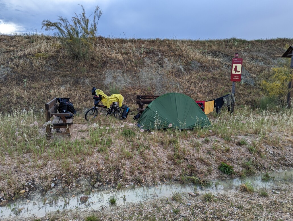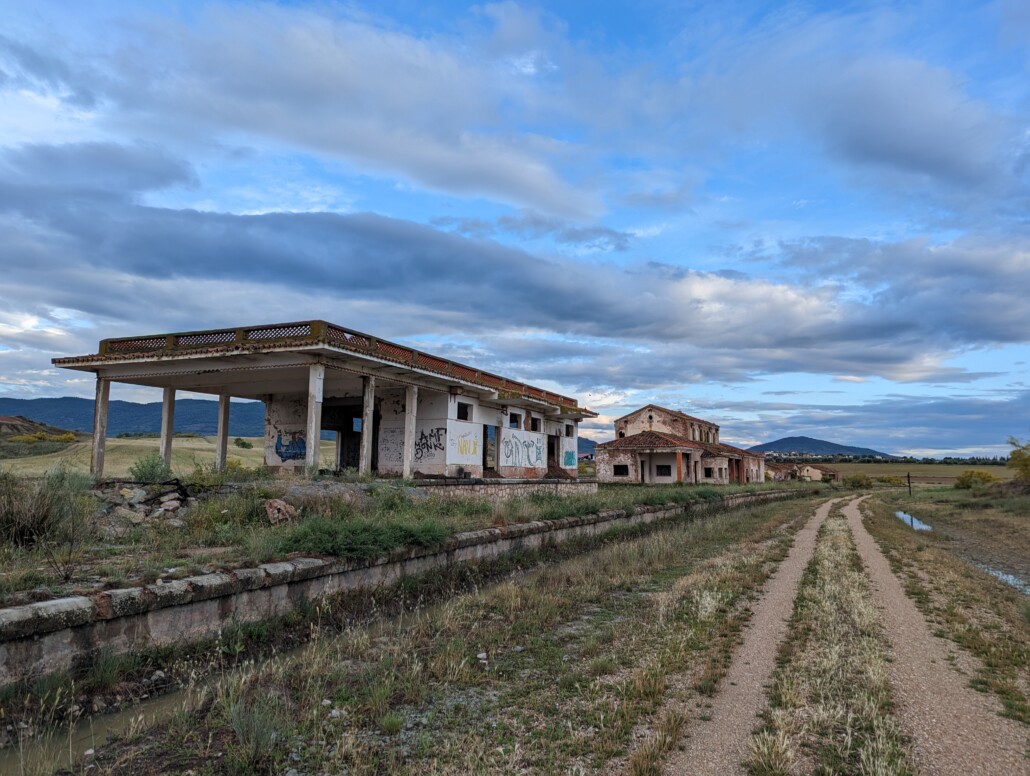 Nach Bacalao und Café hat’s mich doch noch erwischt…an der alten Estación de Génave finde ich Unterschlupf..so sitze ich hier und warte bis es mal wieder aufhört..es hört auf und es fängt auch wieder an und zwar richtig stark… Zeit fürs Ganzkörperkondom…voller Matsch und klatschnass komme ich in Villapalacio an, durchaus gewillt eine Unterkunft zu finden..pero no palacio en Villapalacio..