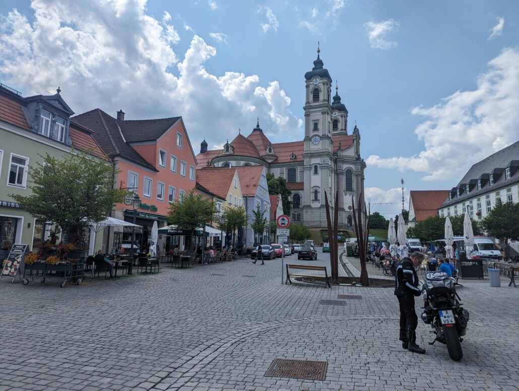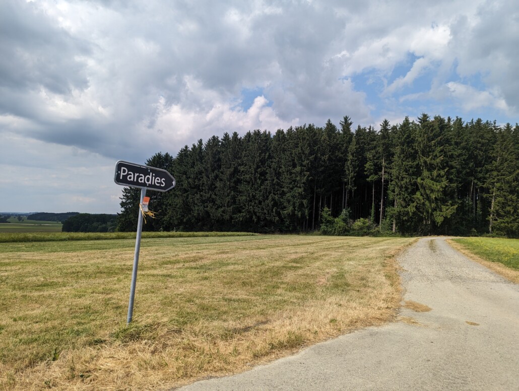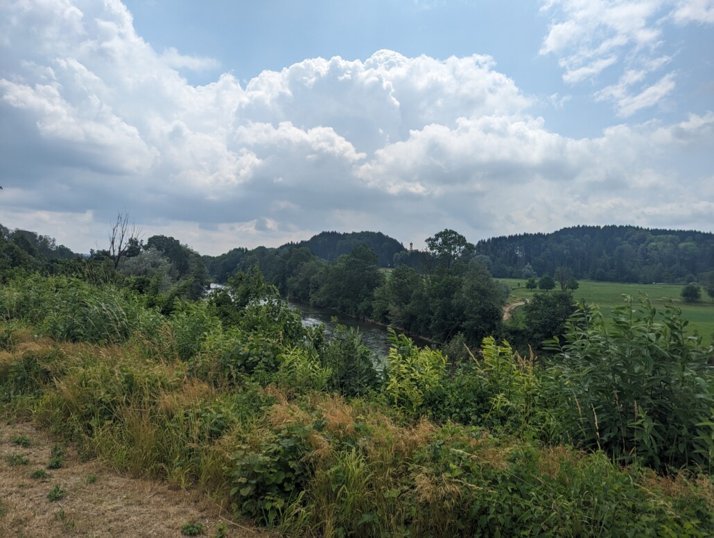 Nach einem guten richtigen Müsli und die Tasche voller Käsespätzle starte ich kurz vor neun Richtung Kempten…der Himmel ist schwarz und nach 10 Kilometern fängt es an zu schütten, obwohl der Wetterfunk Germany Sonne meldet…ich rette mich in ein Bushaltehäuschen..es bleibt gemischt, aber kein Regen mehr, der Wind mal von hinten…